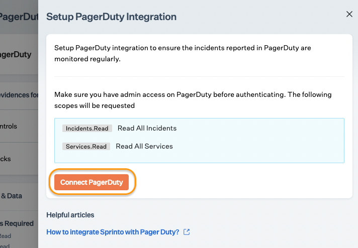 Follow the below procedure to integrate PagerDuty with Sprinto for incident management: