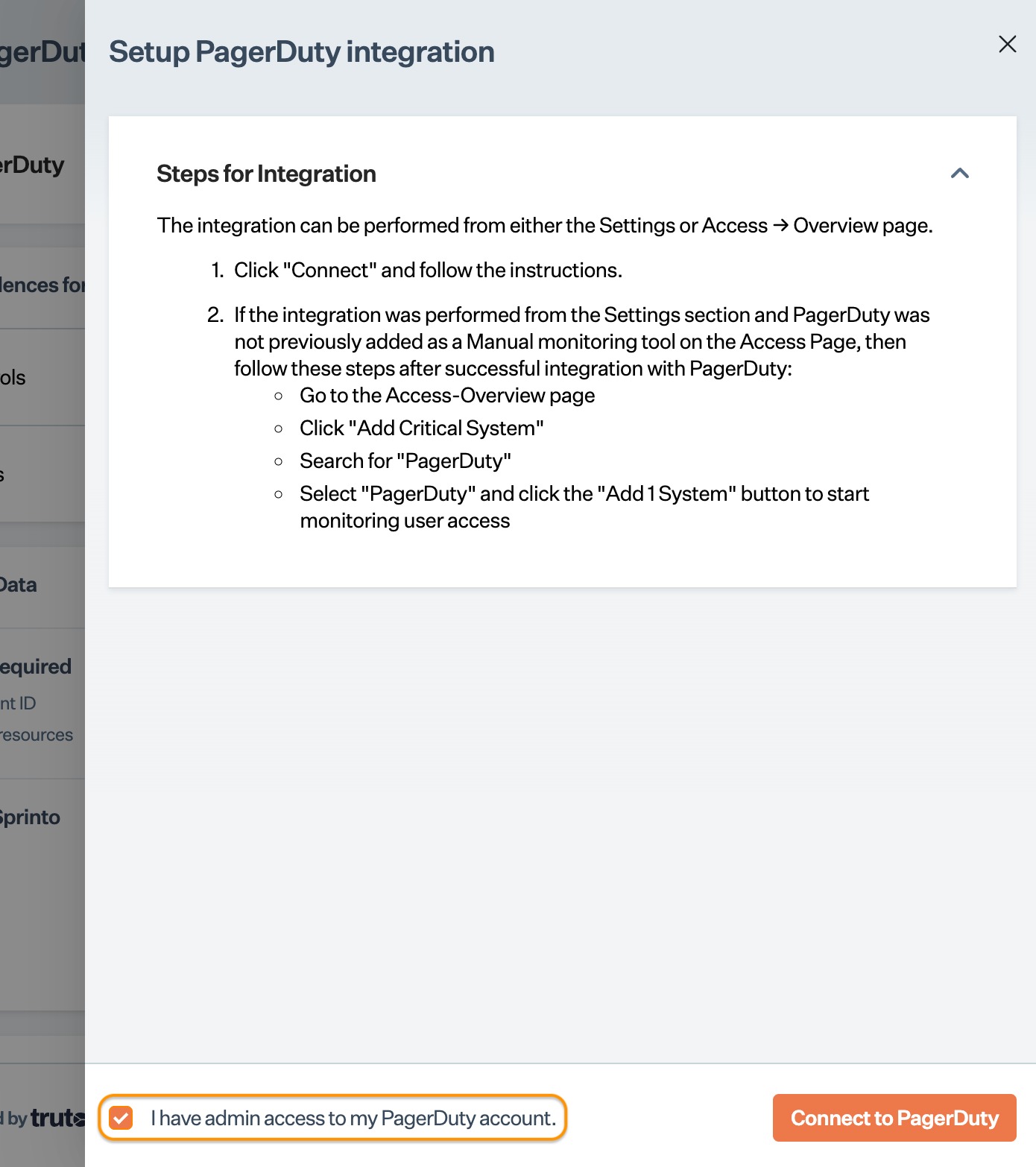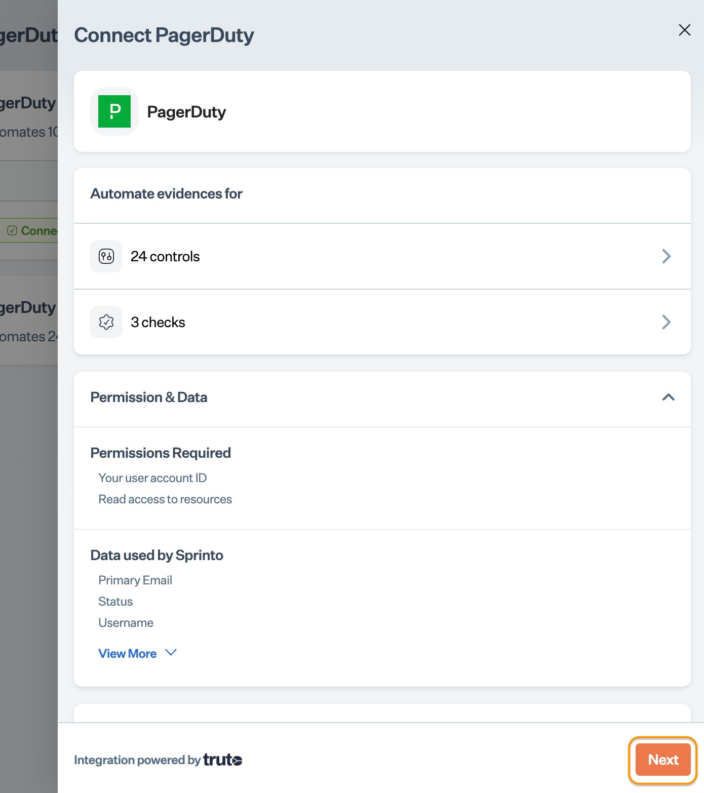 Follow the below procedure to integrate PagerDuty with Sprinto for user access management: Note: Truto is our integration partner for PagerDuty for access management. Sprinto utilizes Truoto’s API capabilities to streamline data inflow.