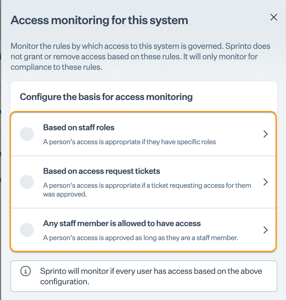 Define the valid access type for PagerDuty. Based on your selected option, Sprinto will compute the validity of users' access to PagerDuty.