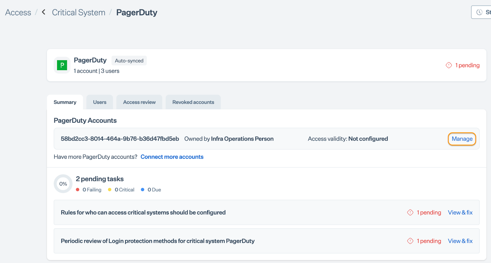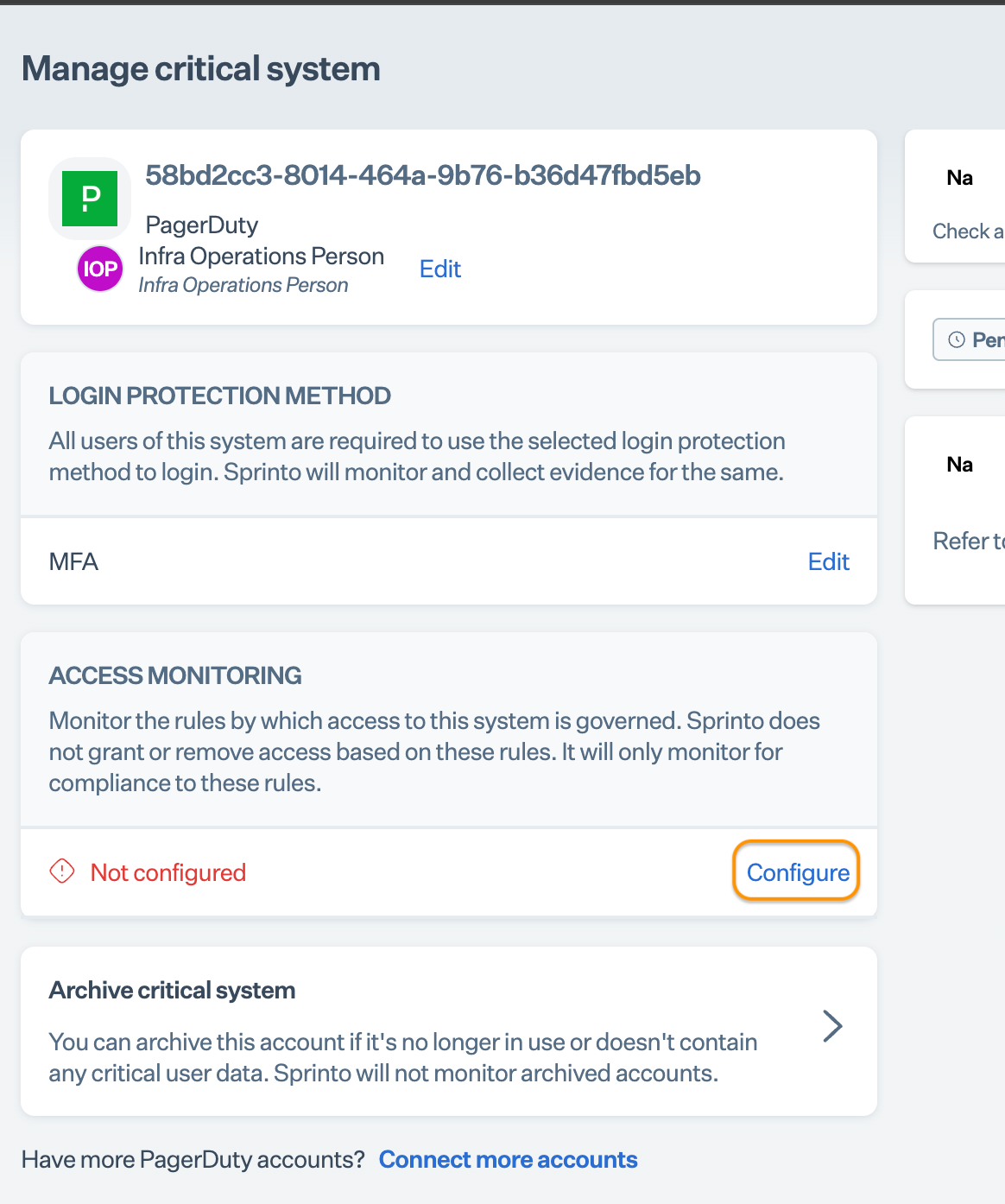 Access Management: Validates the users' access from the PagerDuty account against the defined valid access type on Sprinto, ensuring only the required staff gets access to the PagerDuty.