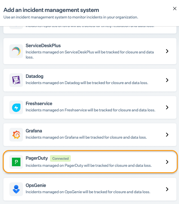 Note: You can move to the next step if PagerDuty is added automatically under the Incident section.