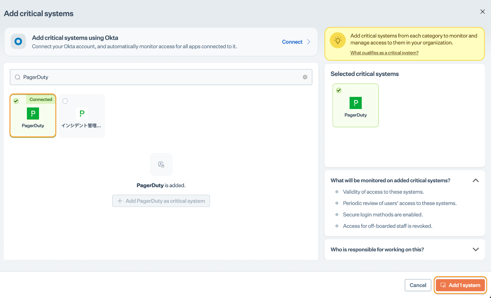 Note: The user access to the critical system becomes valid if the respective Org role is added to the system.