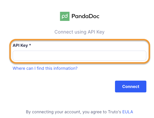 On Authentication page, enter the API key copied from Step 1 and click Connect.