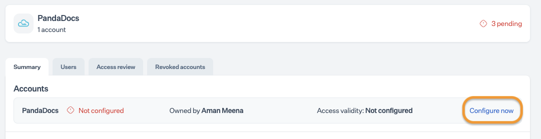 On the Summary page, click Configure Now next to the PandaDocs account.