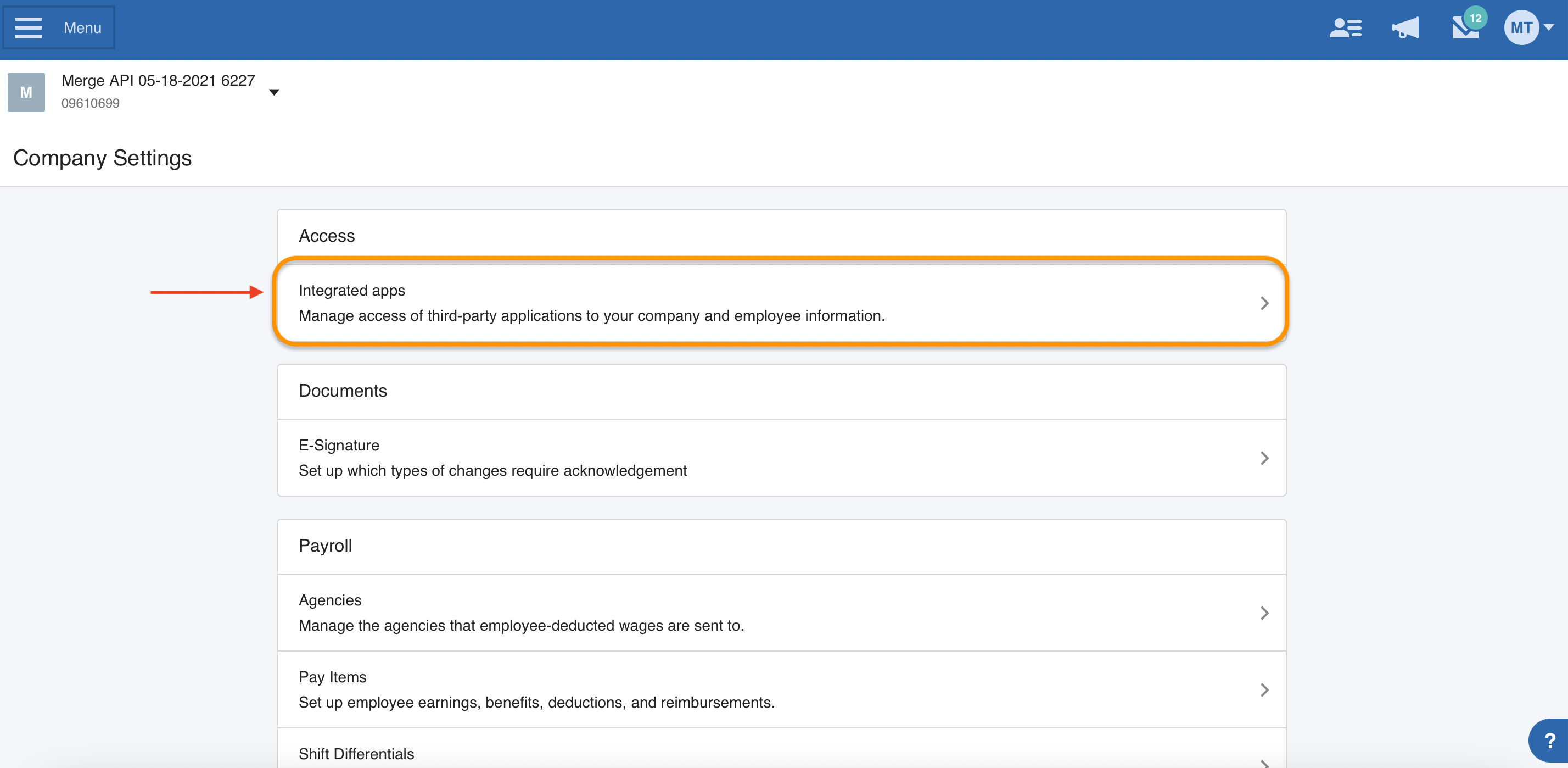 * Under Access, select Integrated apps.