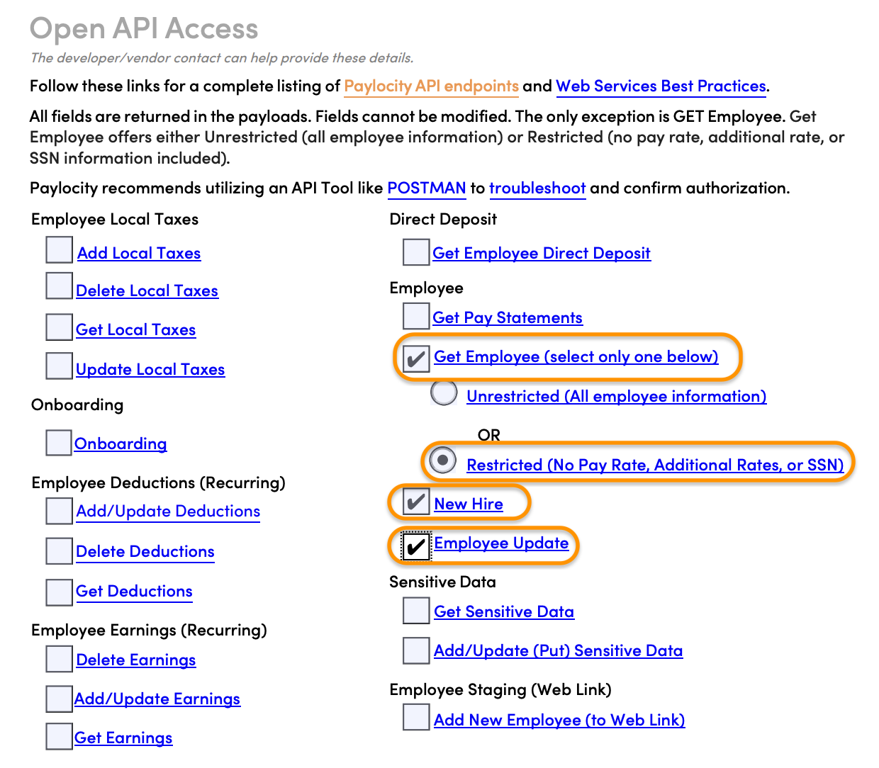 * Fill out the[ Paylocity Web Services - Access Request Form](https://docs.paylocity.com/Knowledge/Partner%20Integration/Paylocity_Web_Services_Access_Request.pdf). Ensure the following information is filled: