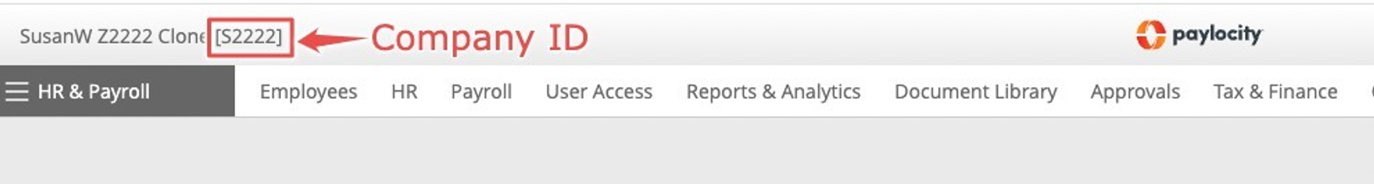 * Copy the company ID from your Paylocity portal. For example, if your client ID reflecting on the portal is CS932637, copy the 932637 and save it for later.