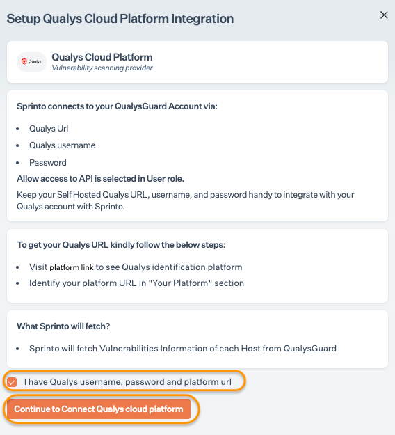 ### Integrate Sprinto with Qualys Cloud Platform <a href="#integrate-sprinto-with-qualys-cloud-platform" id="integrate-sprinto-with-qualys-cloud-platform"></a>