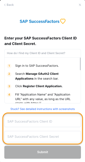 2. Get the Client ID and Secret from your SAP SuccessFactors account.