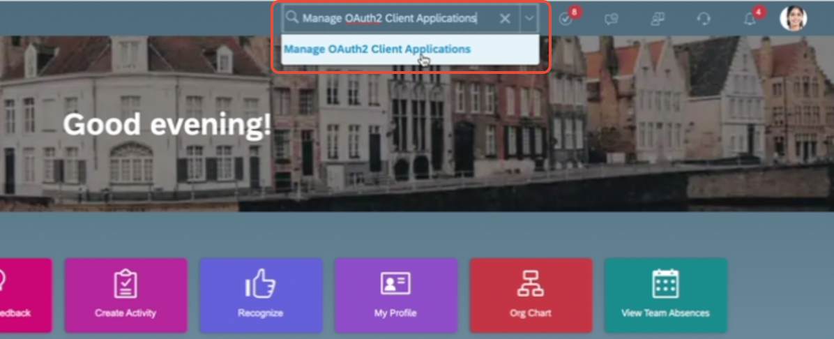 * Open the Manage OAuth2 Client Applications using the search bar.