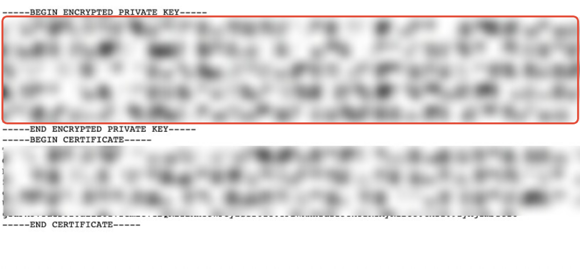 * Open the downloaded file in a text editor. Copy and save your application's Client Secret between the headings "--BEGIN ENCRYPTED PRIVATE KEY-----" and "--END ENCRYPTED PRIVATE KEY-----."