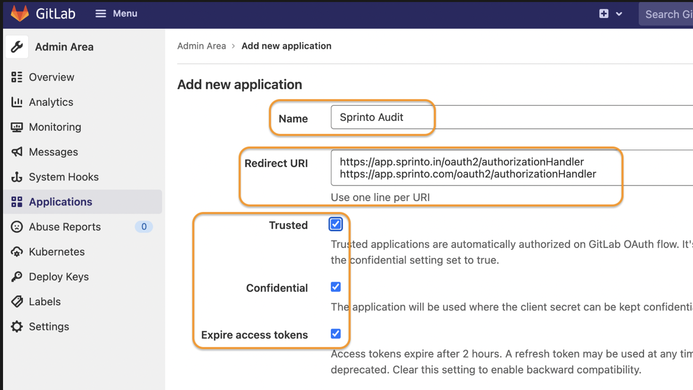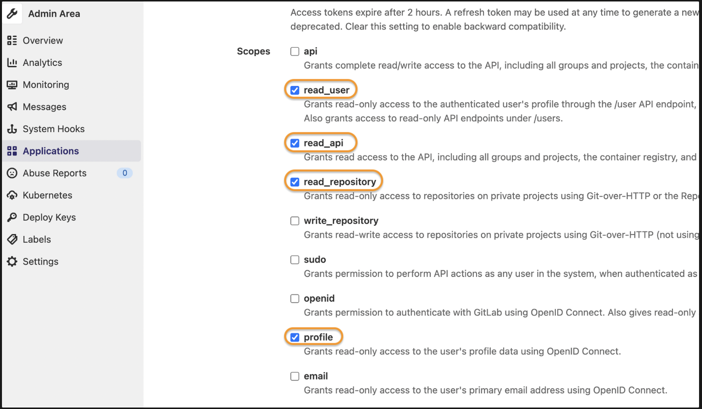 ### Step 1: Create an OAuth Application in Self-Hosted GitLab