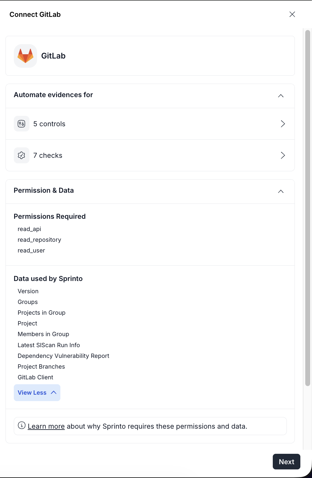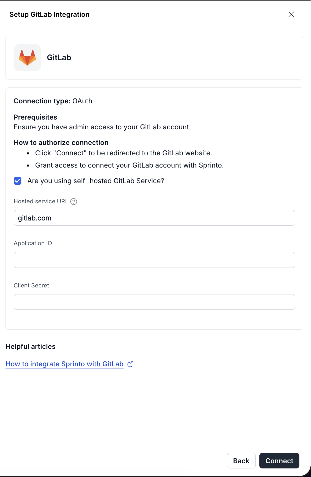 ### Step 2: Connect Self-Hosted GitLab in Sprinto