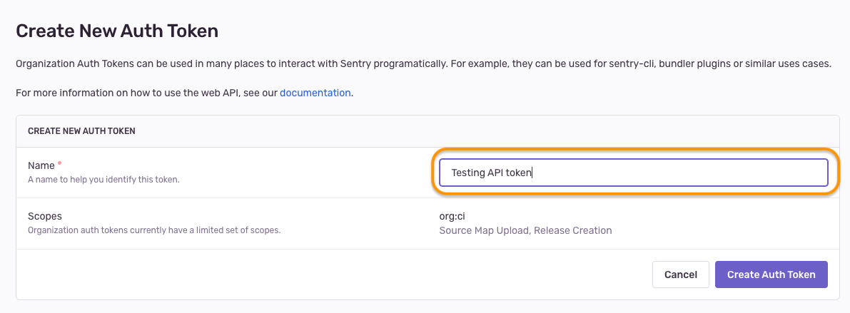 Enter a name for the API token, and click Create Auth Token.