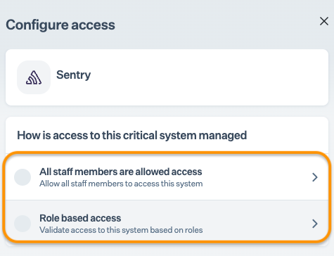 Navigate to Data Library > Access > Critical System, and select Sentry.