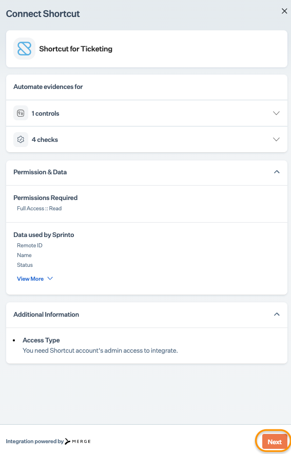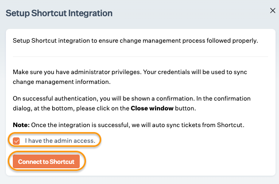 Ensure you have “Admin” access on the Shortcut account you wish to integrate on Sprinto.