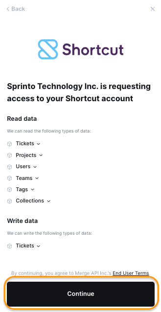 Read the on-screen instructions to understand the permissions granted to Sprinto for its operations. Click Continue.