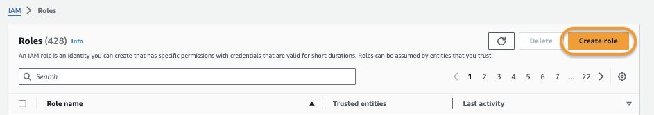 * Click Create role to create a new role.