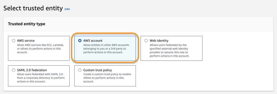 * Select the AWS account from the Select Trust Entities section.