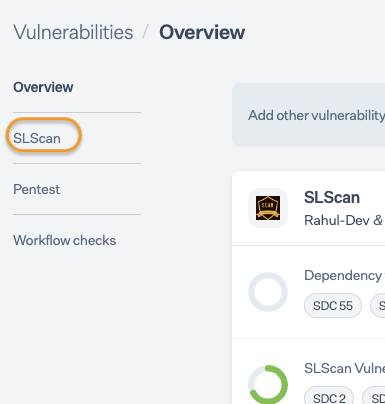 * From the[ Vulnerability Overview](https://app.sprinto.com/app/admin/vulnerabilities/overview) page, select SLScan from the left-side navigation bar.<br>