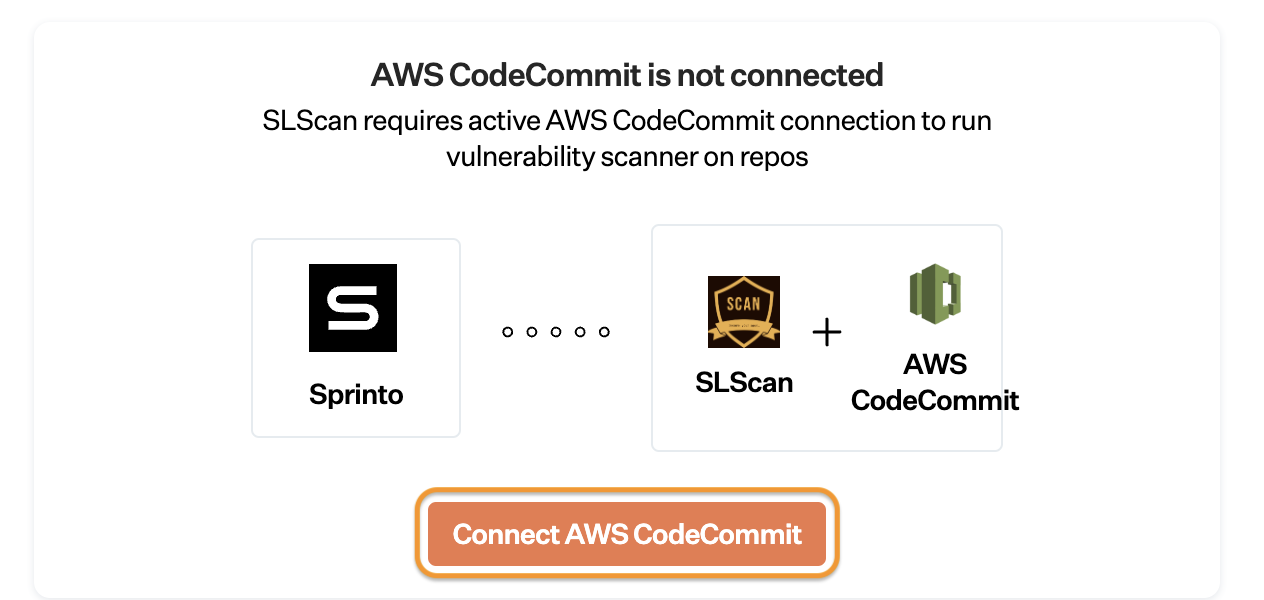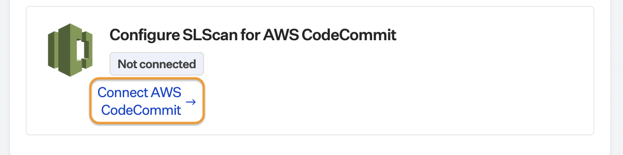 * Click Connect AWS CodeCommit to configure SLScan for AWS CodeCommit.<br>