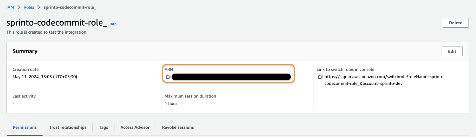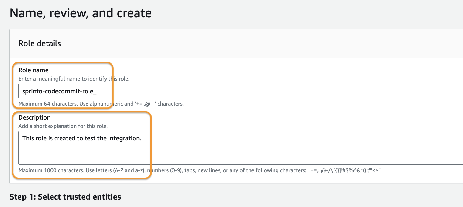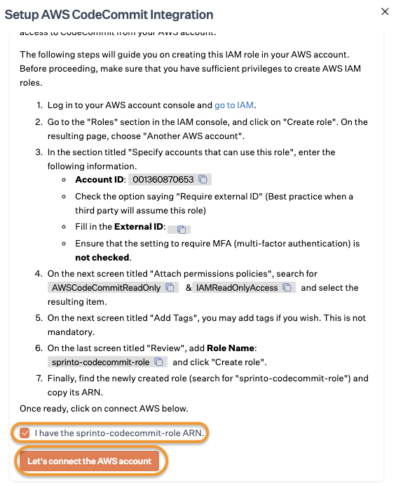 &#x20;**- Role name**: sprinto-codecommit-role<br>