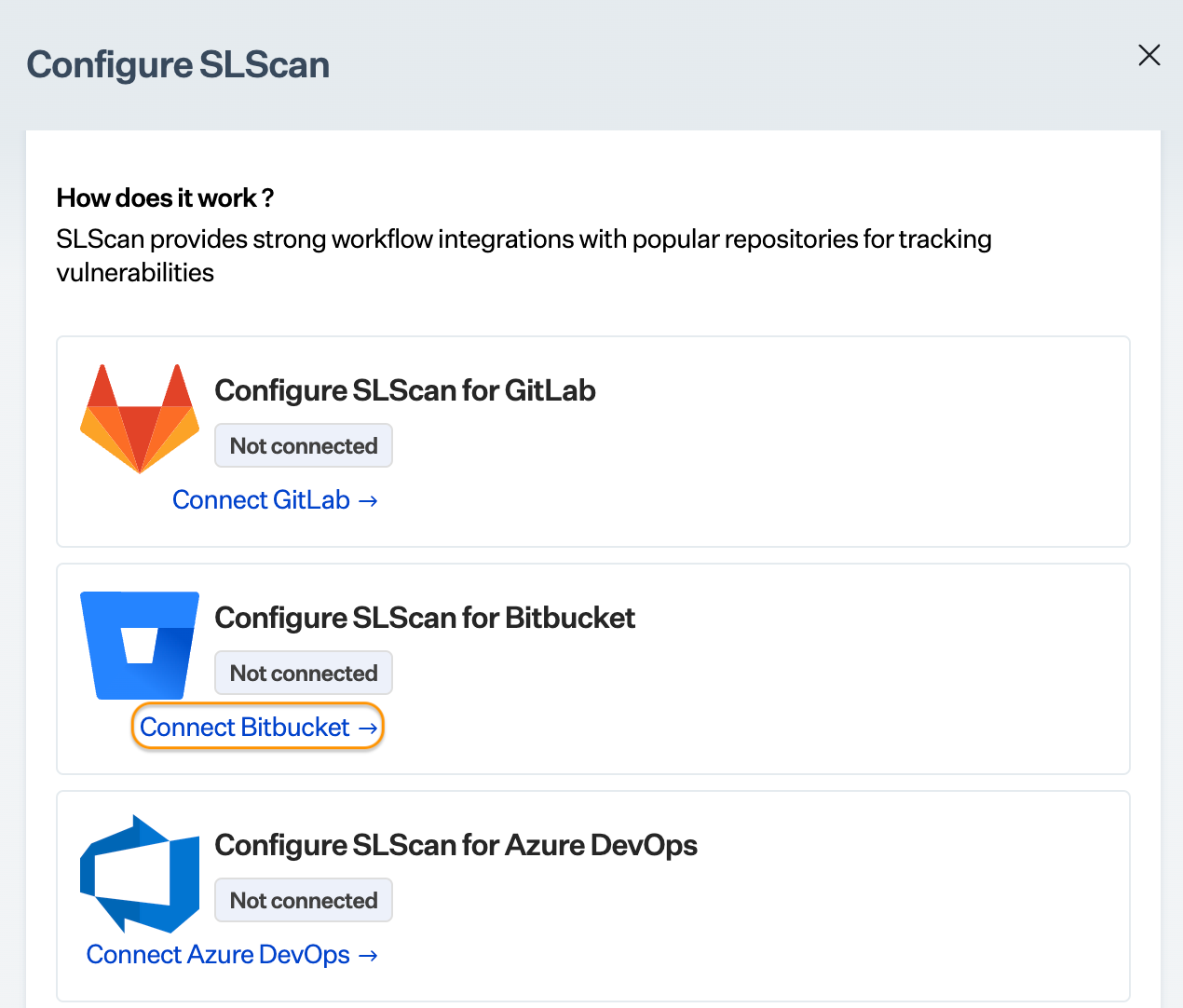 * Click Add SLScan for BitBucket.<br>