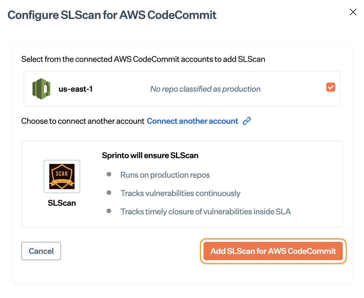 * Click Add SLScan for AWS CodeCommit.