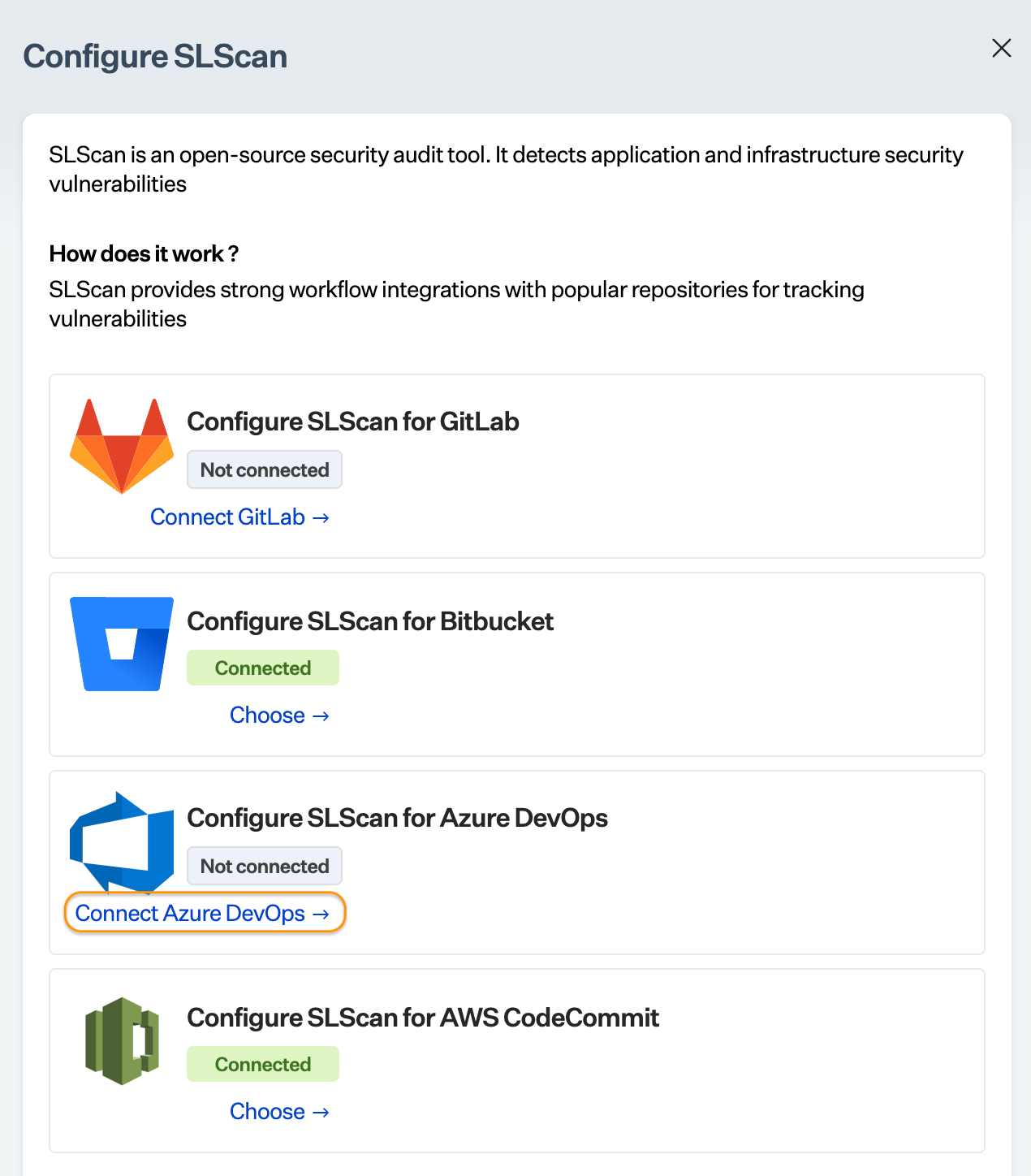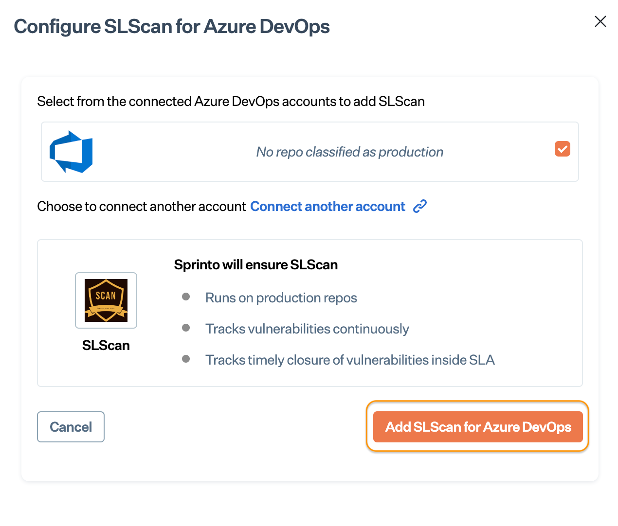 * Click Add SLScan for Azure DevOps.<br>