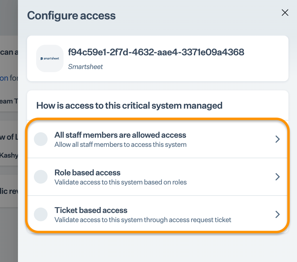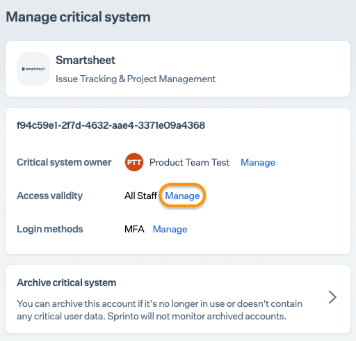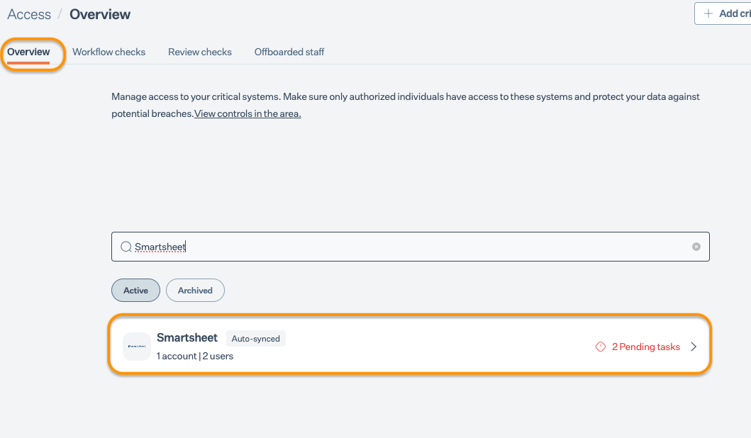 On the Sprinto app, go to Data Library > Access > Overview, and click Add Critical System.
