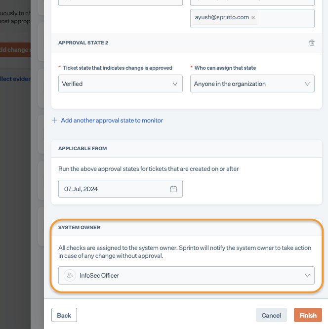 Note: Sprinto monitors the tickets and highlights if any change ticket is moved to a closed state without approval.