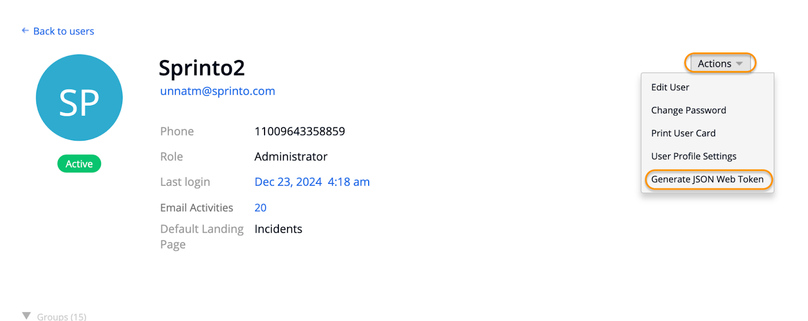 5. Copy the generated token and save it securely. We will need this token on Sprinto to build integration.<br>