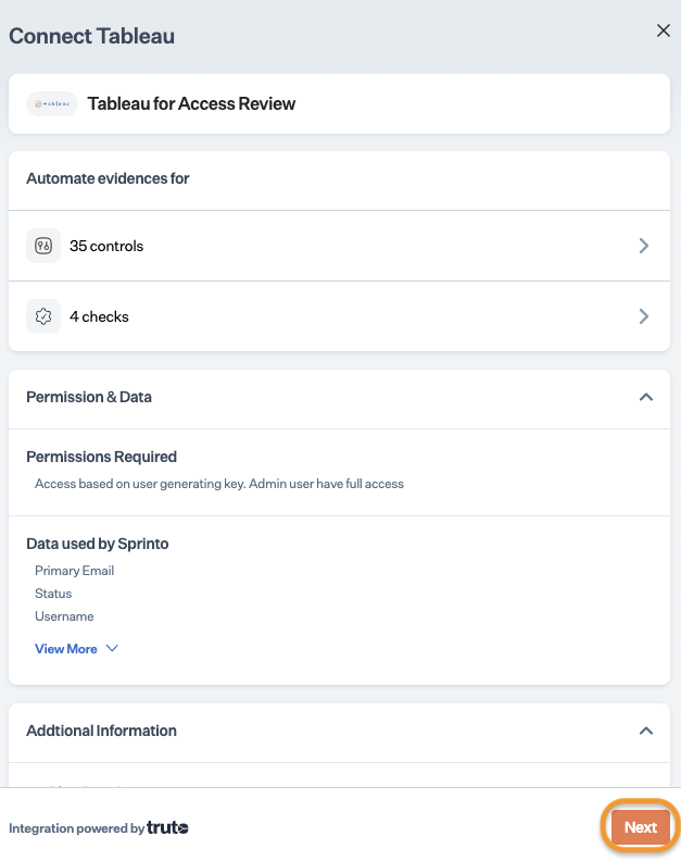 2. Integrate Tableau on Sprinto.