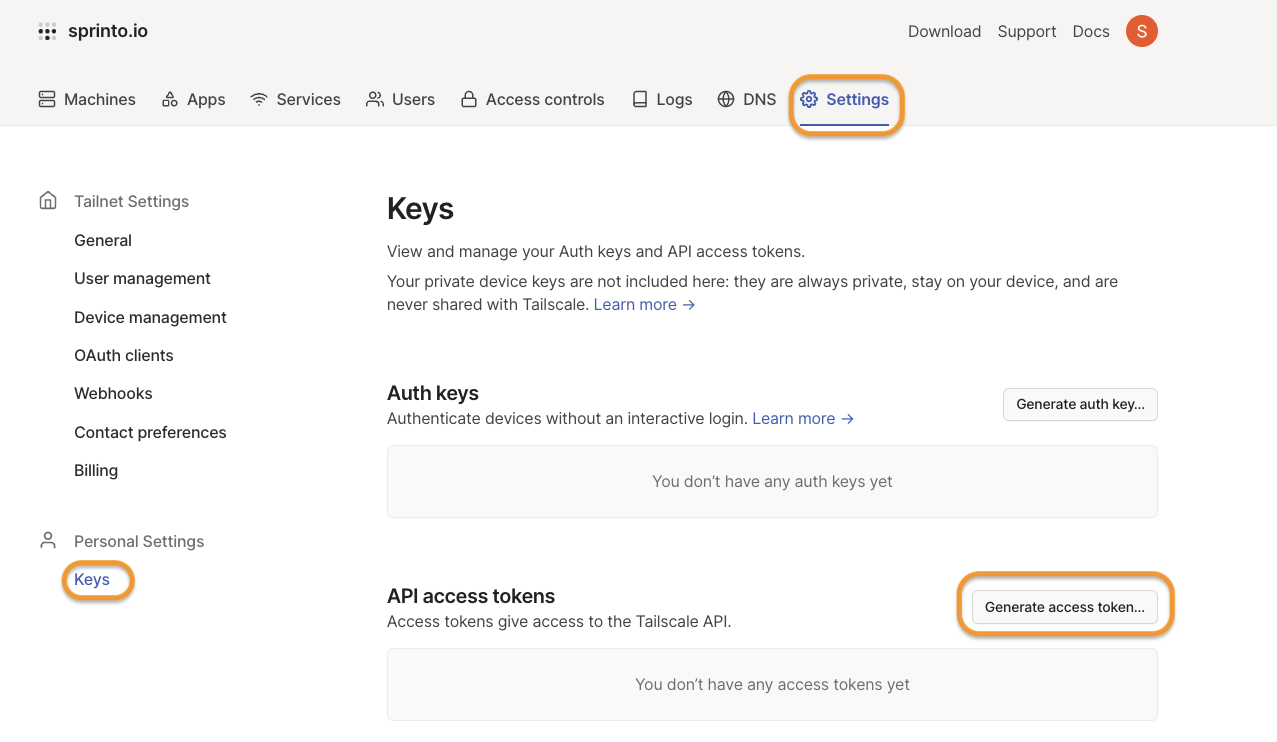 Note: The token expires after your set expiration date. You need to reintegrate your Tailscale account on Sprinto after the token expiry.