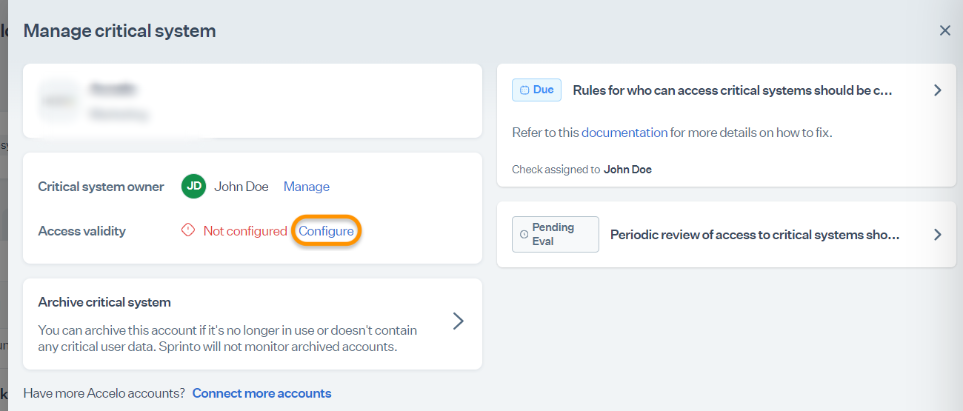 * On the Sprinto app, go to Data Library > Access and click Add Critical System.