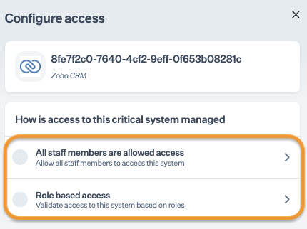 * Go to **Data Library** > **Access** > **Critical systems**, and select Zoho CRM.