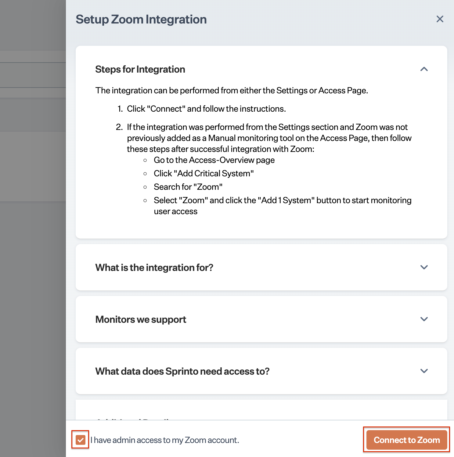 How to integrate Sprinto with Zoom