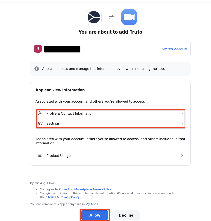 Note: We use Turto.one as our integration partner to integrate and fetch required user details from the Zoom account.