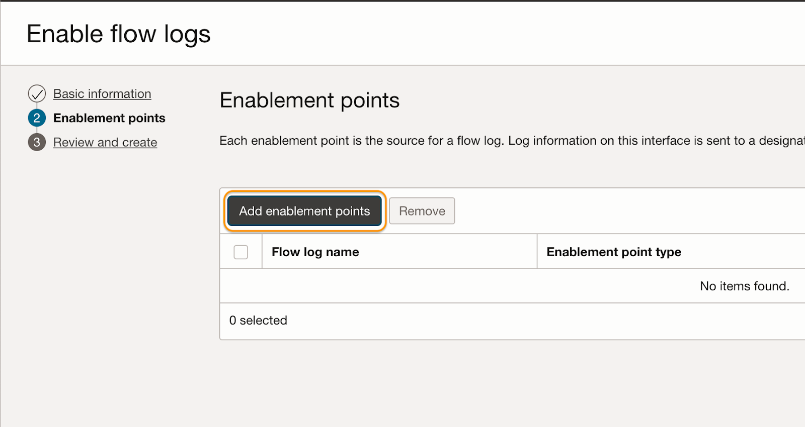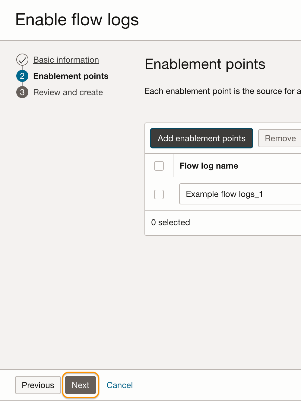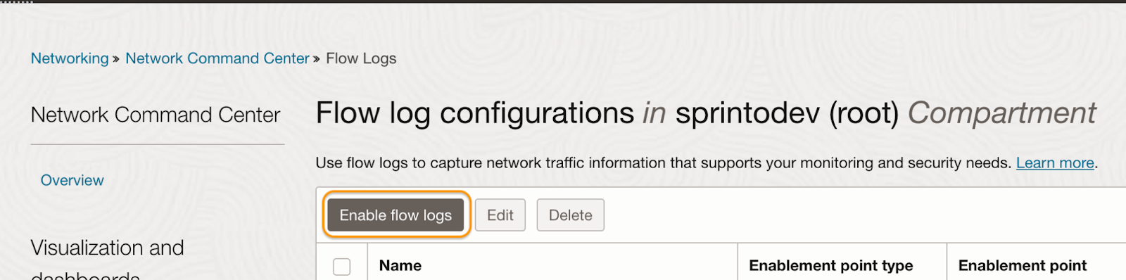 3. On Flow logs configuration page, click Enable flow logs.