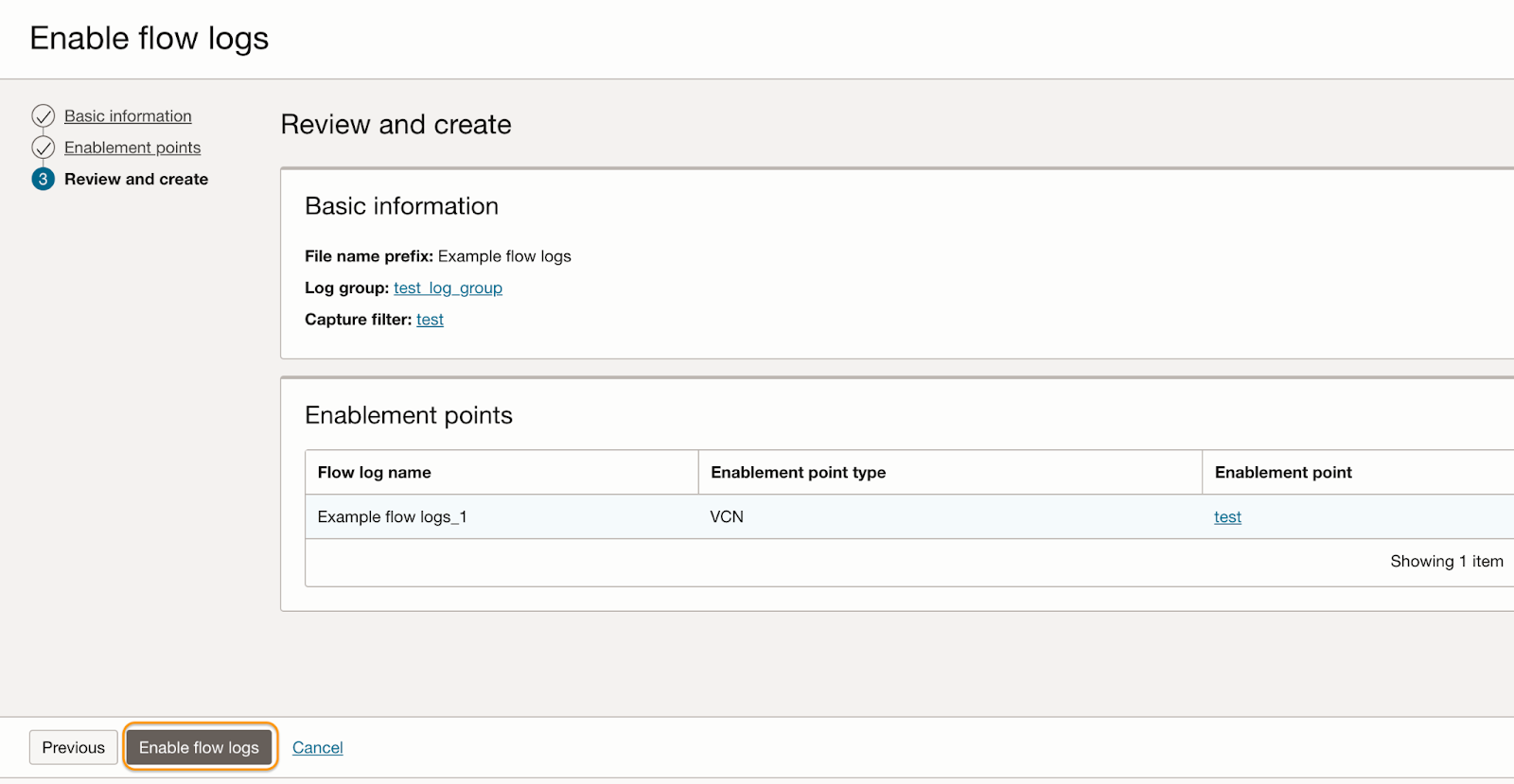 10. Review your selections, and click Enable flow logs.