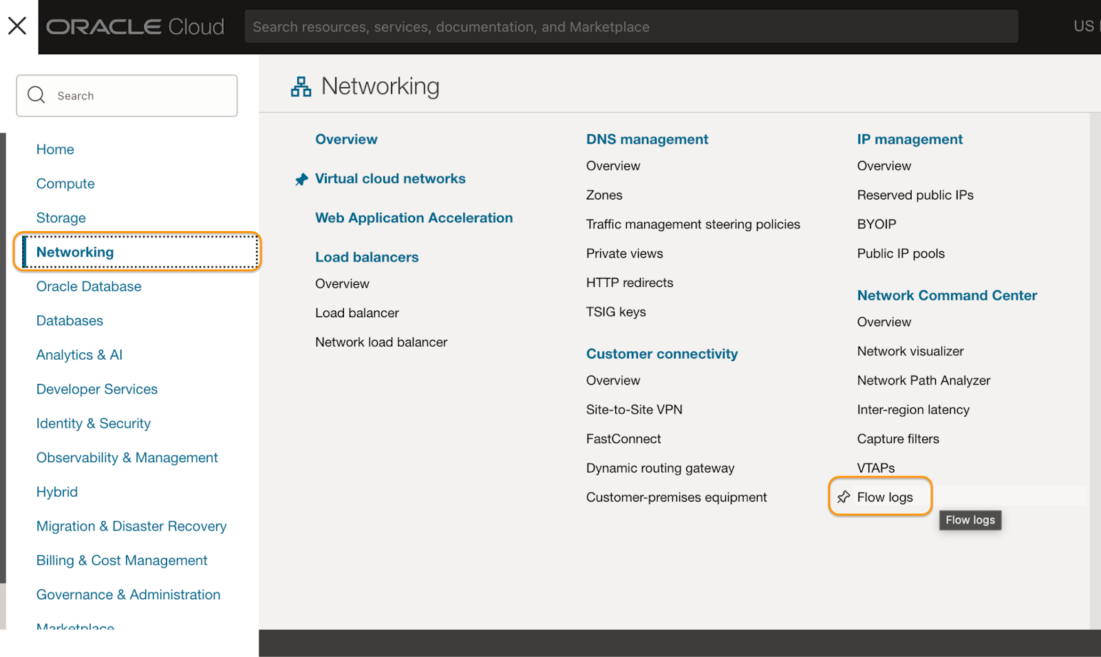 Follow the steps below to capture Oracle Cloud Virtual Cloud Networks (**VCN**) flow logs.