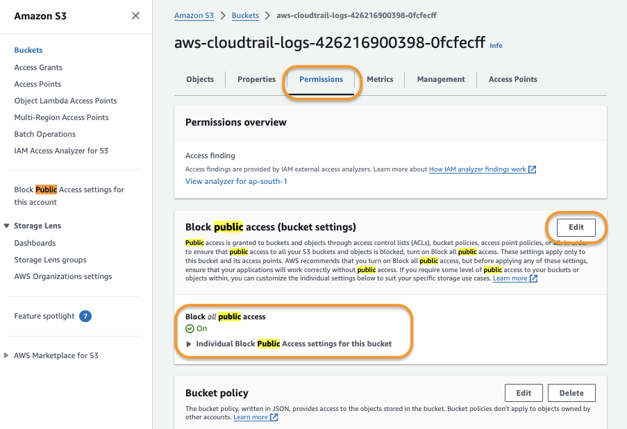 How to resolve Sprinto check to ensure that AWS CloudTrail logs is public protected