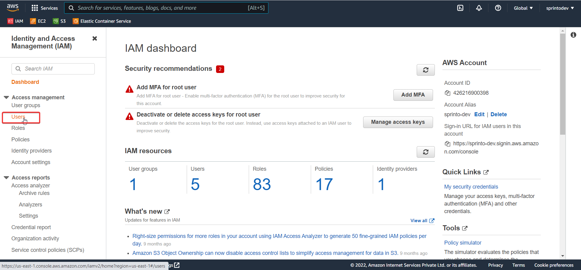 In the navigation pane, choose Users.