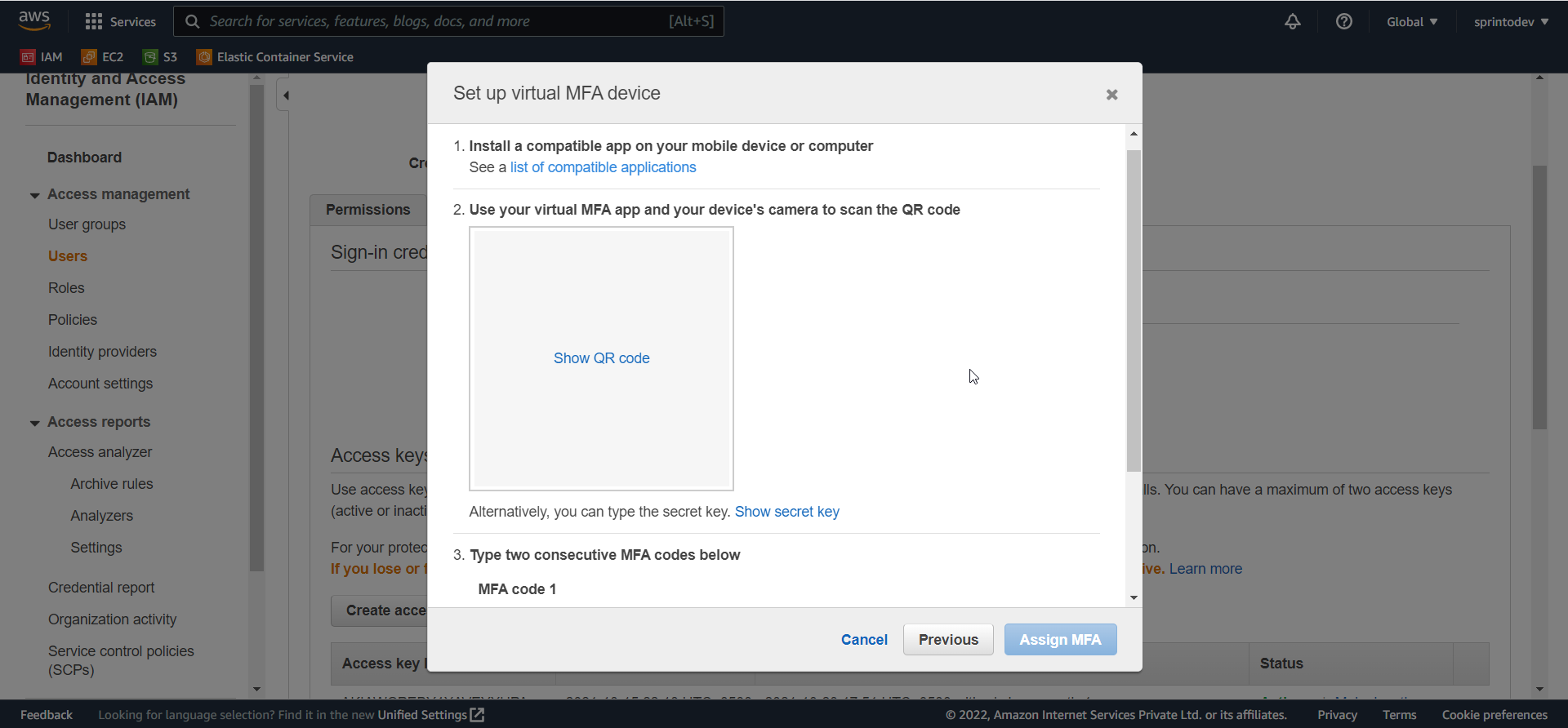 Enabling MFA for AWS IAM User