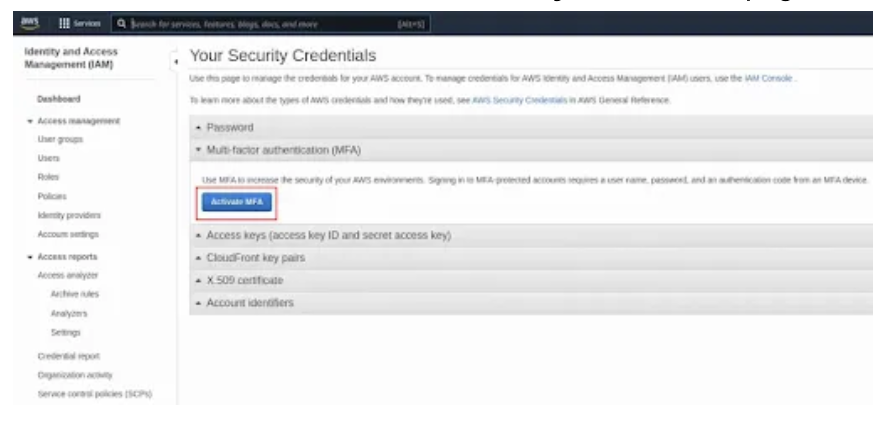 How to resolve Sprinto check for enabling Multi Factor Authentication (MFA) on AWS Root users