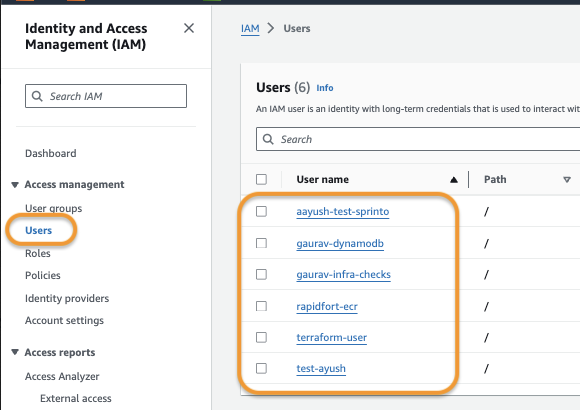 Click on Users from the left-side navigation bar, and select your desired IAM user from the list.