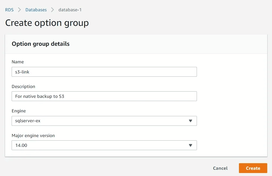 Create “Option group”