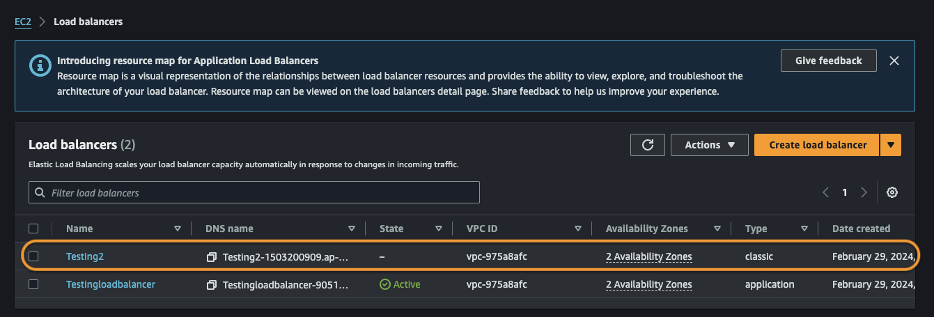 Confirm the existence of Application Load Balancers (ALB) or Classic Load Balancers (CLB) on your AWS account for which you want to set up alerts.