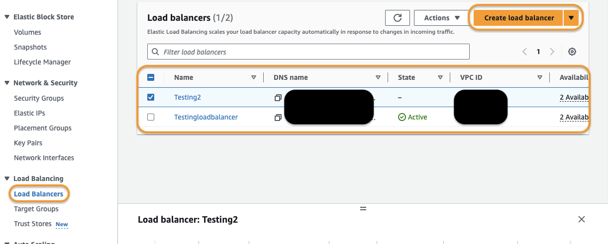 5. Click Create load balancer to create a new load balancer if required.
