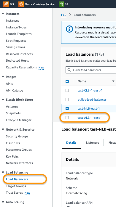 4. Select the ALB from the list for which you wish to review the public access.